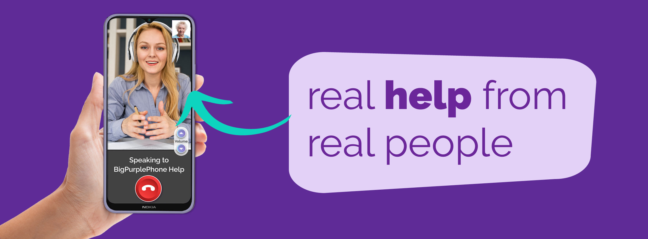 If your loved one experiences difficulty, they can use the Help button* and one of our friendly customer care team members will be there to assist. Whether its working out a feature on the phone, or helping you and your Loved One setting up their new BigPurplePhone.